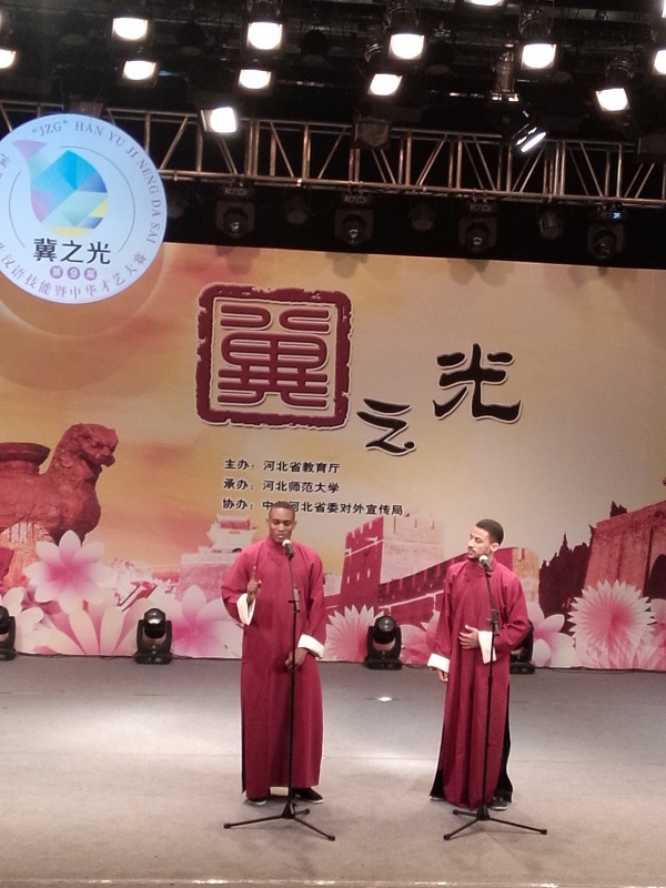 2015冀之光留学生才艺大赛,我校留学生的相声《满腹经纶》