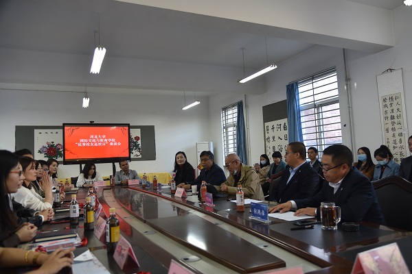 首先,学院党总支书记梁卫格代表学院表达了对本次返校校友的热烈欢迎,各位校友分别进行了自我介绍并表达了对母校百年校庆的祝福;河北大学原外事办主任郭献庭教授为全体师生简要介绍了国际交流与教育学院发展的历史,并对学院今后的发展提出了建议。闫屹院长表示,校友是母校的重要资源,校友是母校连接社会的重要载体,是传播河北大学声誉的重要桥梁,学校及学院的发展离不开校友的关心和支持,期待优秀校友继续保持和学校及学院的联系。