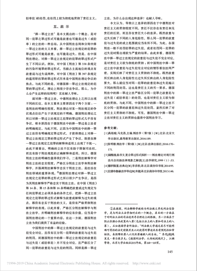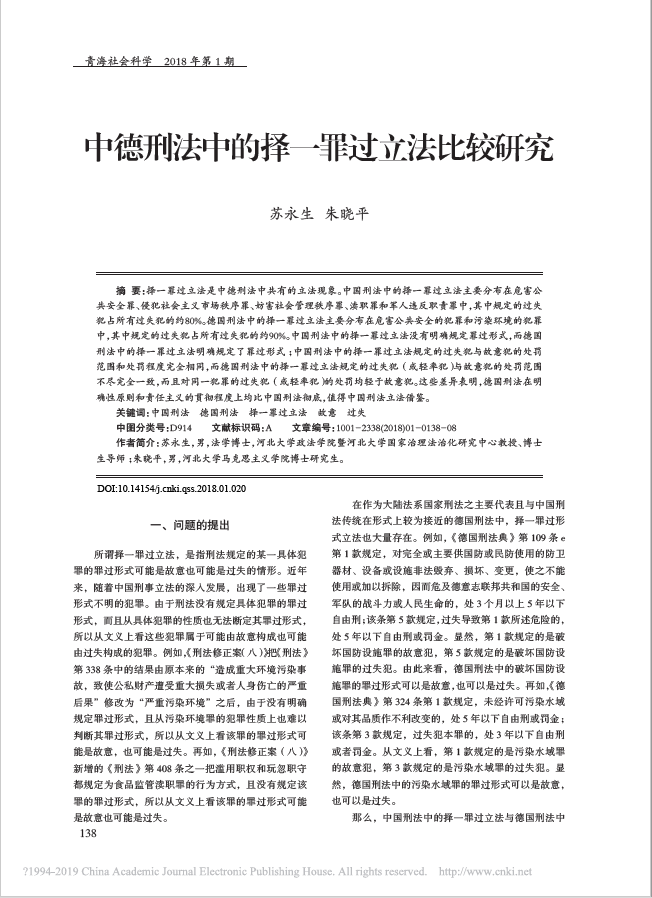 苏永生、朱晓平:中德刑法中的择一罪过立法比较研究