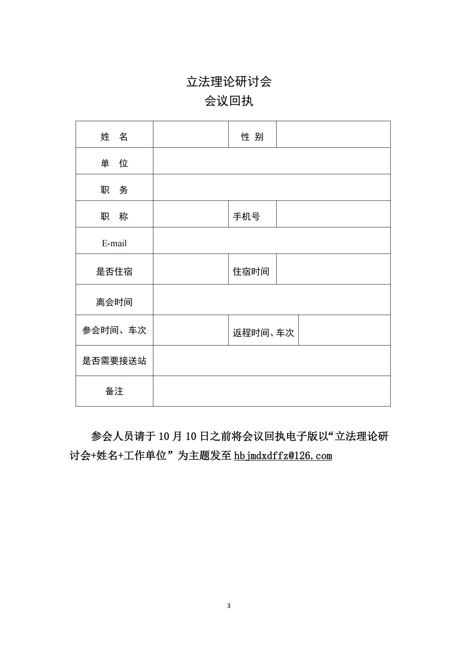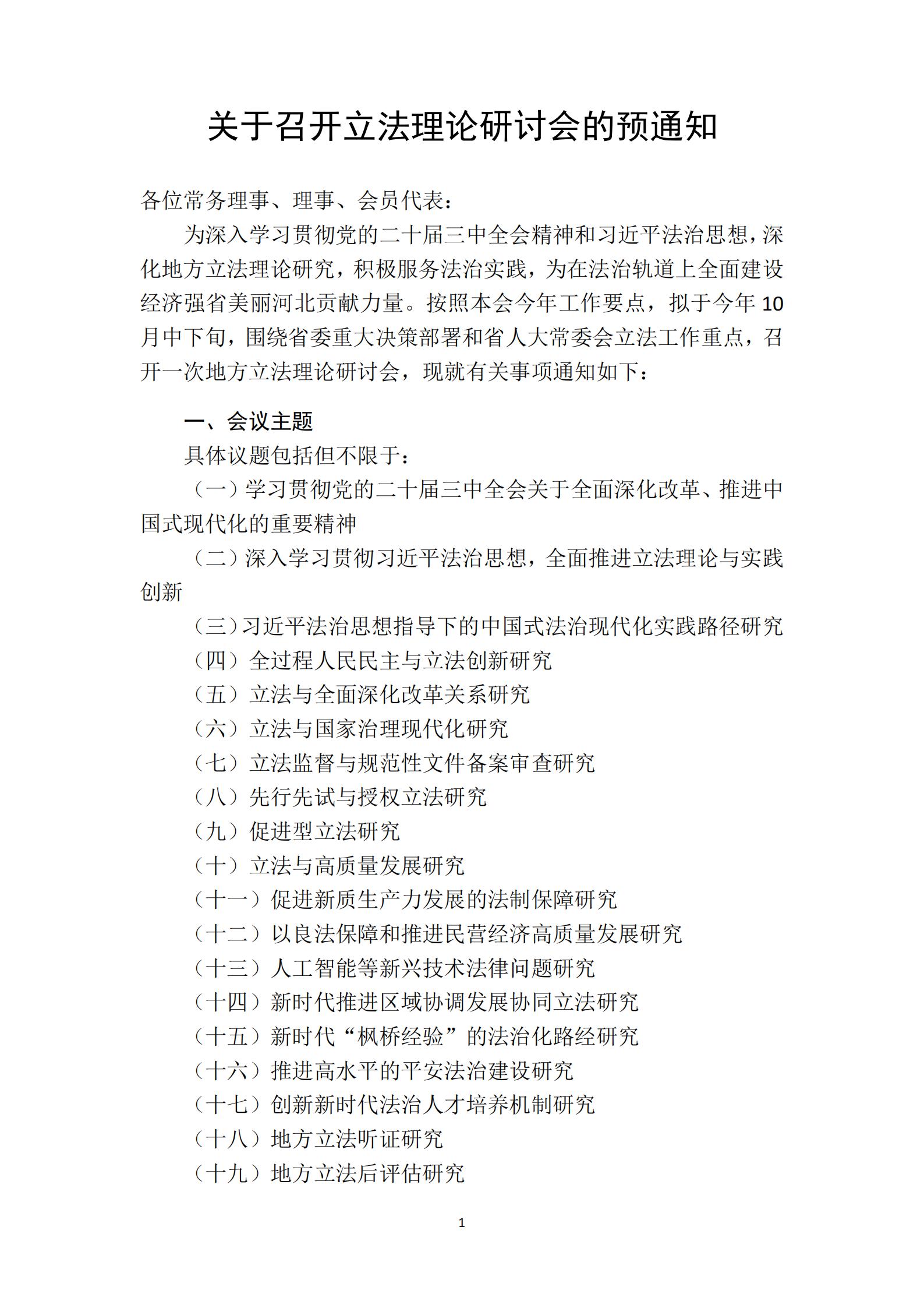 关于召开立法理论研讨会的预通知