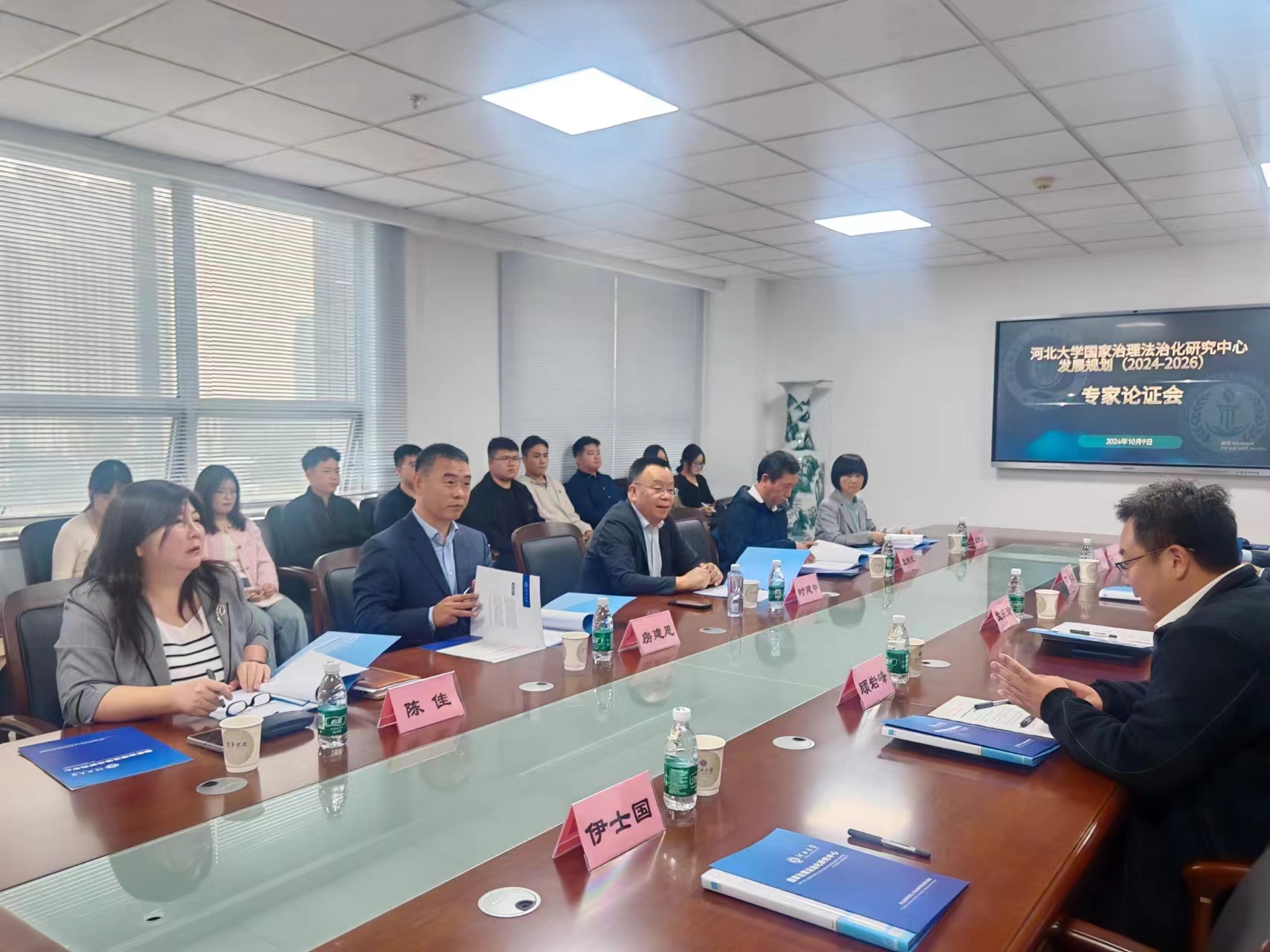 2024年10月9日下午,河北大学国家治理法治化研究中心发展规划(2024-2026)专家论证会顺利举行。会议特邀中国政法大学副校长、博士生导师时建中教授担任论证专家组组长,中央司法警官学院政治部副主任兼组织处处长孟利民教授、河北农业大学人文社会科学学院院长房建恩教授、河北金融学院法学院院长王宝娜教授和河北大学法学院院长陈佳教授担任论证专家组成员,河北大学党委常委、副校长、中心主任孟庆瑜教授、河北大学哲学社会科学研究院顾岩峰副院长、法学院副院长刘广明教授、法学院副院长、中心学术带头人伊士国教授、中心学术带头人苏永生教授以及部分博士、硕士研究生参加了本次会议。