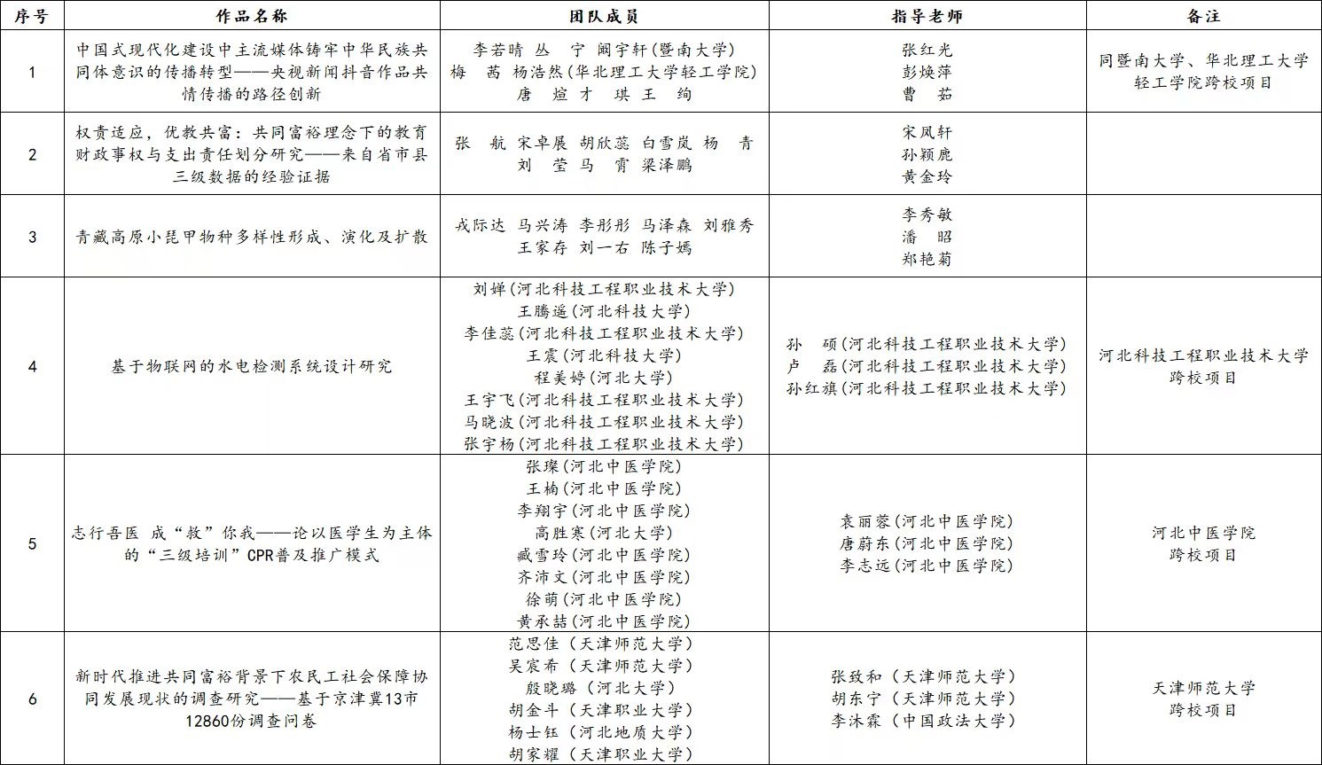 根据第十八届“挑战杯”全国大学生课外学术科技作品竞赛组委会有关要求,现将我校拟推荐参加国赛项目与跨校项目的团队信息进行公示,具体名单见下表。