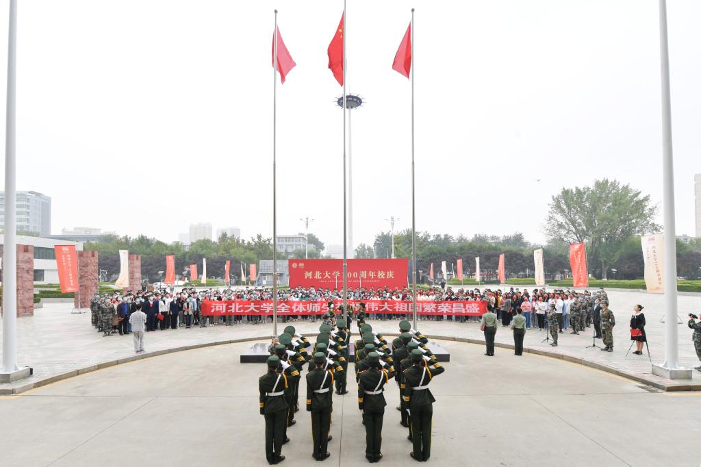 倪志宇在升旗仪式上讲话。她指出,河北大学作为与党同龄的高校,始终与民族共命运,与时代同脉搏,与祖国共成长。一代代学子努力向学、蔚为国用,历数代而共同孕育了“实事求是”的校训传统和“博学、求真、惟恒、创新”的校风精神,谱写了辉煌灿烂的百年办学历史。她希望,广大学生要把爱国爱党的拳拳之心、“强国有我”的报国之志,贯穿到每个人的奋斗青春之中去,把“个人梦”化为“强校梦”,把“强校梦”融入“中国梦”,以实际行动为伟大祖国送上祝福!