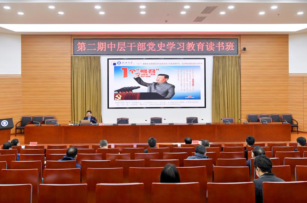 郭健作了题为《学习贯彻“七一”重要讲话精神 做新时代党的高教战线上的好干部》的专题报告,重点从深刻理解“全面建成小康社会”“四个伟大成就”“伟大建党精神”“九个必须”四个方面,解读了习近平总书记“七一”重要讲话的重大意义、丰富内涵、核心要义、实践要求,并勉励读书班学员深入学习贯彻“七一”重要讲话精神,为新时代党的高等教育事业发展担当作为、争创佳绩。郭健指出,习近平总书记“七一”重要讲话高屋建瓴、视野宏阔,思想深邃、饱含深情,是坚定信仰信念信心的最好教科书,是闪耀着马克思主义真理光辉的纲领性文献,是我们党以史为鉴、开创未来的政治宣言书,是激励全党全国各族人民奋进新征程、建功新时代的强大动员令,为全党全国各族人民向第二个百年奋斗目标迈进指明了前进方向、提供了根本遵循。他希望每一名学员都切实增强学习贯彻“七一”重要讲话的政治自觉、思想自觉、行动自觉,讲政治、强能力、扛责任、转作风,在建校百年新的历史起点上,为河北大学更加美好的明天不懈奋斗,为建设教育强国、办好人民满意的教育做出河北大学新的更大贡献。