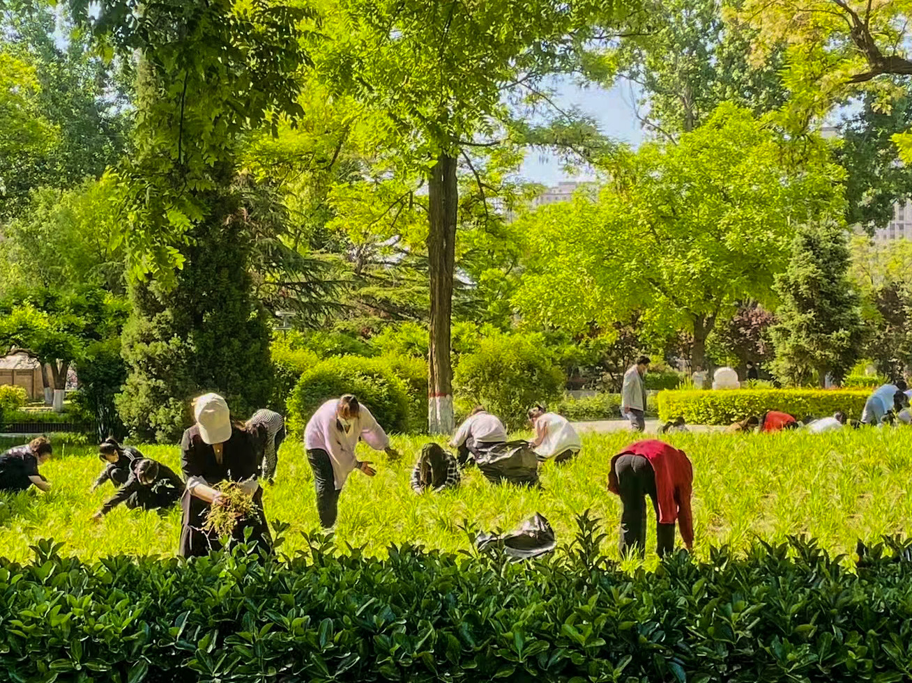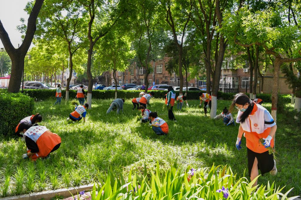 同学们在毓秀园开展劳动教育实践活动