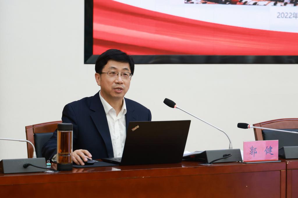 郭健遵循党的二十大报告内在逻辑,从深刻认识和把握党的二十大的重大意义、深刻认识和把握过去五年工作和新时代十年伟大变革的重大意义、深刻认识和把握习近平新时代中国特色社会主义思想的世界观和方法论、深刻认识和把握以中国式现代化推进中华民族伟大复兴的使命任务、深刻认识和把握对党和国家事业的新部署新要求、深刻认识和把握以伟大自我革命引领伟大社会革命的重要要求、深刻认识和把握团结奋斗的时代要求等七个方面,对党的二十大精神进行了整体解读和全面阐释。郭健立足支撑教育强国、科技强国、人才强国建设,回顾了河北大学的百年历程,介绍了推动实现学校高质量发展的历史基础、宝贵机遇、发展优势和基本工作思路,勉励新入职教师厚植家国情怀、坚持立德树人、涵养道德学识、融入学校发展,为办好人民满意的教育作出新的更大贡献。