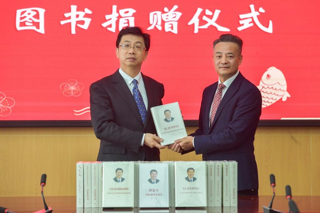 4月6日,《习近平谈治国理政》外文版图书捐赠仪式在我校举行。北京崇学文化发展有限公司向我校捐赠《习近平谈治国理政》英、俄、法、西、日等多语种图书345册。党委书记郭健,北京崇学文化发展有限公司法定代表人余富文出席捐赠仪式,党委常委、副校长孟庆瑜主持仪式。