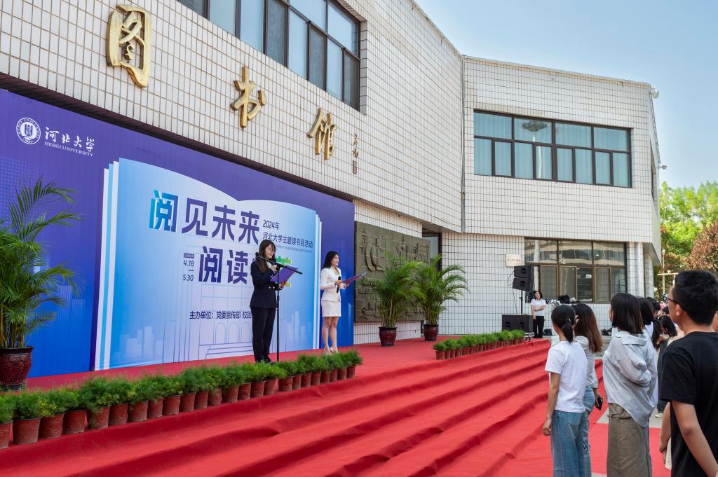 4月18日下午,2024年河北大学“阅见未来 阅读悦美”主题读书月开幕式在我校图书馆五四路馆区前举行。校党委常委、副校长孟庆瑜出席开幕式并致辞。