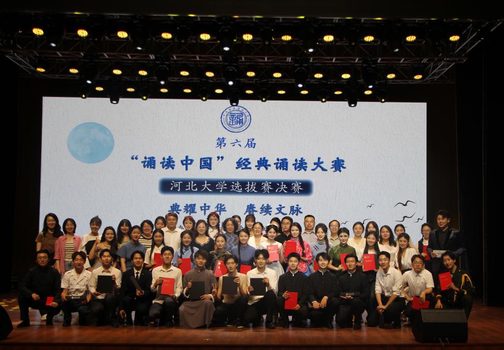6月13日下午,由我校教务处、学生处、校团委共同主办,新闻传播学院、河北大学有声语言传播研究中心承办的第六届“诵读中国”经典诵读大赛河北大学选拔赛决赛,在我校邯郸音乐厅举办。经评审团评审,《青衣》《钢铁》《阿房宫赋》三部作品获得一等奖;《就是那一只蟋蟀》《播火者》《阵地上的婚礼》等七部作品获得二等奖,《采蒲台的苇》《芦花荡》《枸杞花开》等十部作品获得三等奖。