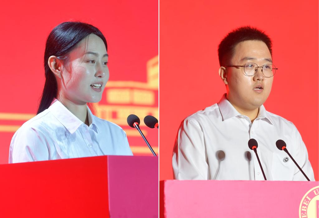 新生代表,历史学院2024级博物馆专业硕士研究生张玉晴、2024级质量管理工程专业本科生刘勃含分别表示,要把个人理想与国家命运、民族复兴紧密联系在一起,以实际行动奋力书写为中国式现代化挺膺担当的青春篇章。