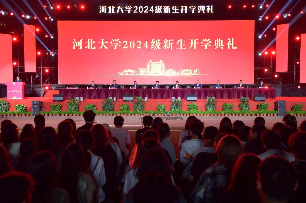 典礼上,党委书记郭健代表学校向2024级全体新同学表示热烈的祝贺和诚挚的欢迎。他通过讲述四个河大人的故事,带大家走近河北大学:老校长华南圭先生的故事,彰显了河大人教育报国、育人兴邦的爱国精神;杨宝忠教授的故事,彰显了河大人潜心学术、持之以恒的治学精神;白洋淀水体治理团队的故事,彰显了河大人心怀人民、服务国家的奉献精神;大学生创新创业团队的故事,彰显了河大人敢为人先、追求卓越的创新精神。
