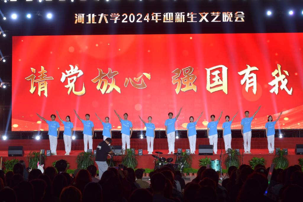 开学典礼结束后,河北大学2024年迎新生文艺晚会精彩上演,为新生带来一场视听盛宴。晚会通过歌曲、舞蹈、朗诵、京剧、武术、快板、器乐演奏等丰富多彩的艺术形式和高质量的演出,向新生的到来表达最热烈的欢迎。
