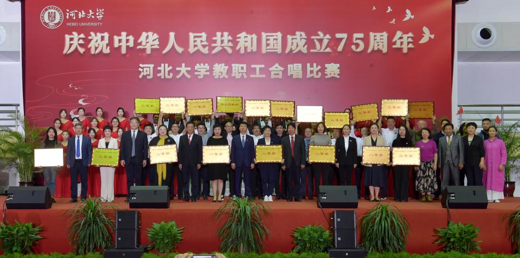 党委书记郭健在致辞中指出,举行“河北大学庆祝中华人民共和国成立75周年教职工合唱比赛”,这是用歌声抒发爱国之情、砥砺强国之志的一次盛会,也是全校师生深入学习贯彻党的二十届三中全会、全国教育大会精神,以河北大学高质量发展服务教育强国建设的誓师大会。郭健强调,全校上下要更加紧密地团结在以习近平同志为核心的党中央周围,把思想和行动统一到党中央决策部署上来,坚持不懈用习近平新时代中国特色社会主义思想铸魂育人,进一步深化学校综合改革,加快建设一流高水平大学,办好人民满意的教育,为加快建设经济强省、美丽河北,为推进强国建设、民族复兴伟业作出新的更大贡献。