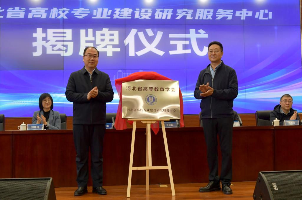 会议还举行了河北省高校专业建设研究服务中心揭牌仪式,孟庆瑜、王廷山揭牌。本次会议共有来自全国高校学科专业建设领域的专家学者,省内各高校的负责同志200余人参会。河北大学党委常委、副校长刘秀玲,以及教务处、发展规划处、研究生院、教育教学研究与教师发展促进中心等单位的负责同志参加了会议。