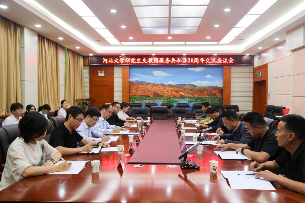 在工作交流座谈会上,孟庆瑜充分肯定了研支团扎根青藏高原、耕耘三尺讲台的奉献担当,对服务地给予研支团的关心支持表示感谢。他勉励研支团志愿者,要深入学习贯彻习近平总书记给谢依特小学戍边支教西部计划志愿者服务队队员的重要回信精神,尽快熟悉环境、融入集体、进入角色,潜心教书育人,把个人成长融入国家发展大局,在服务奉献中书写无悔青春。他表示,学校将继续深化校地合作,为服务地输送更多优秀力量。共青团海南州委书记周拉才让向河北大学长期以来的关心支持表示感谢,高度评价了研支团在提升教学质量、促进当地教育事业发展等方面发挥的重要作用。会上,共和县副县长加羊、河北大学团委书记白金分别介绍了研究生支教团工作开展情况和志愿者选拔培养情况,服务学校校长及教师代表、第二十届研支团志愿者代表分别发言。