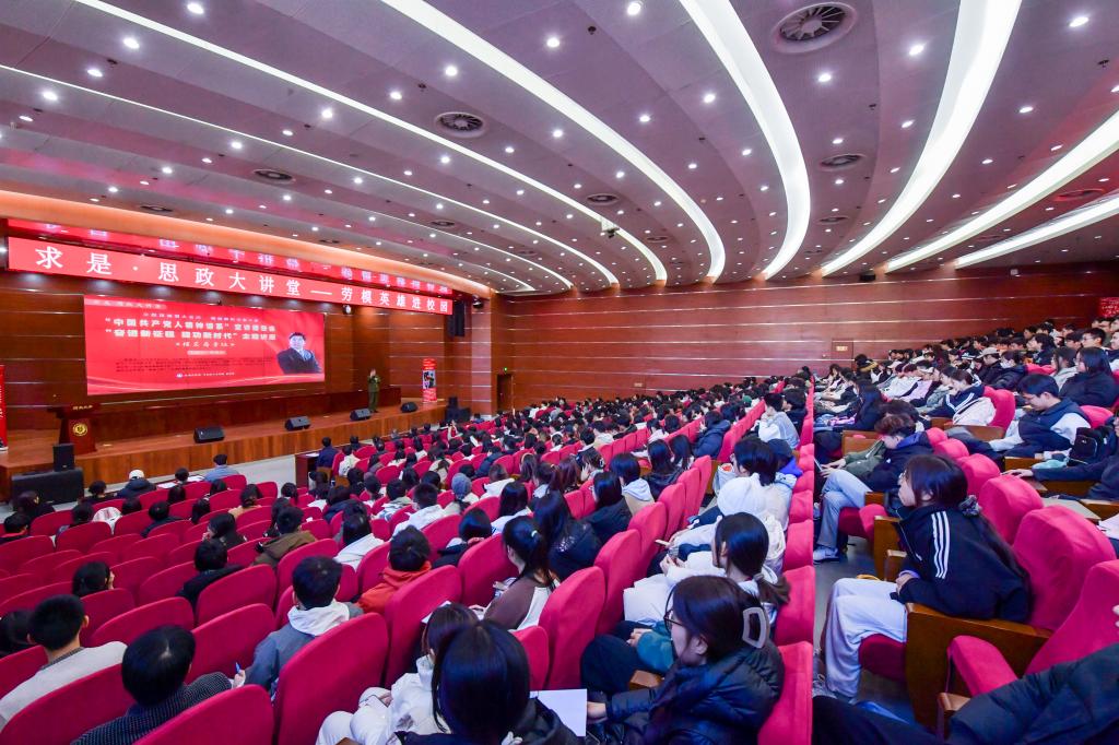 奋进新征程、建功新时代。11月17日,河北大学求是·思政大讲堂“中国共产党人精神谱系”宣讲报告会在七一路校区图书馆报告厅举办。全国著名演讲家、全国优秀青年思想教育工作者蔡朝东应邀担任主讲,为师生带来题为《信念与责任》的主题报告。