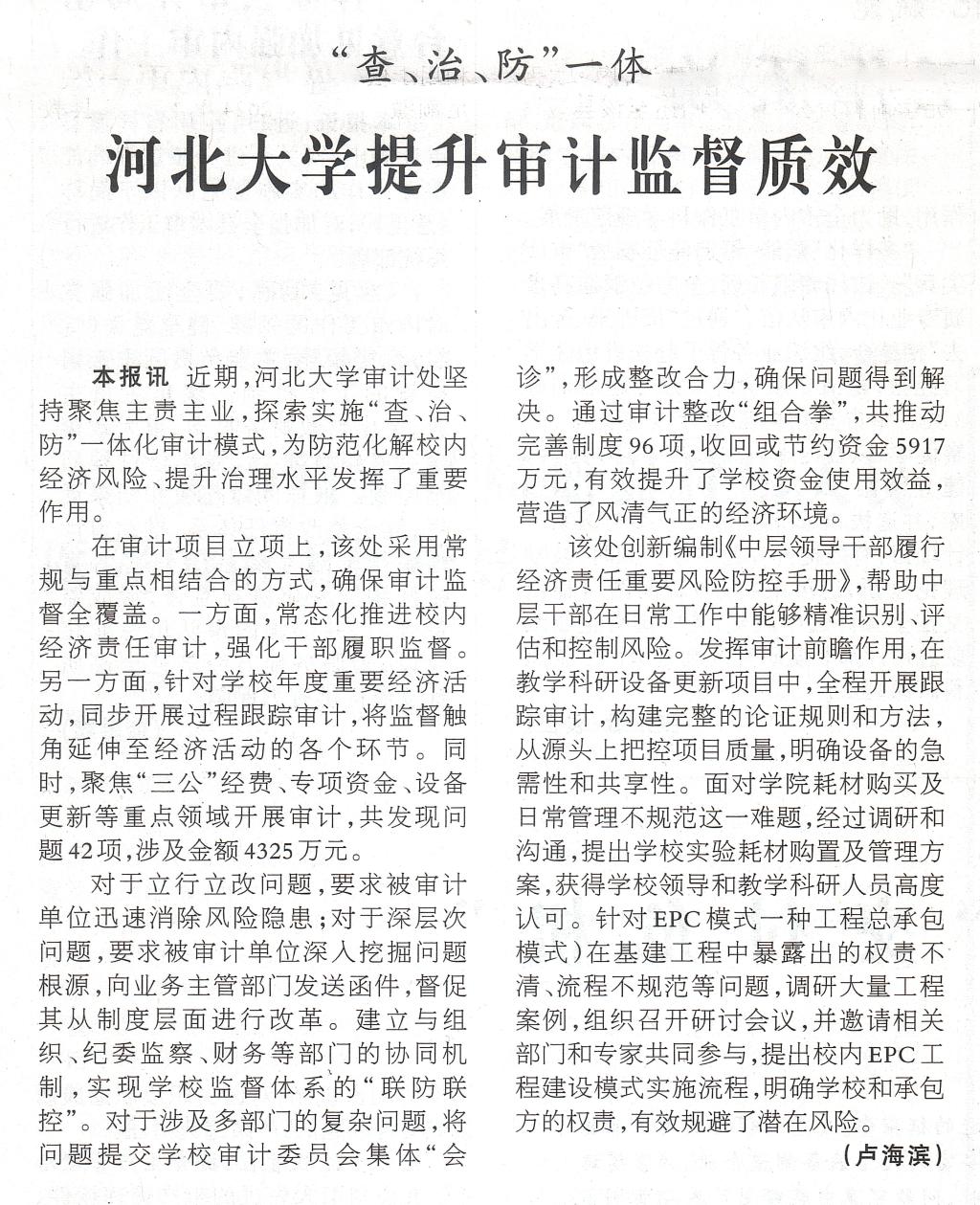 “查、治、防”一体 河北大学提升审计监督质效