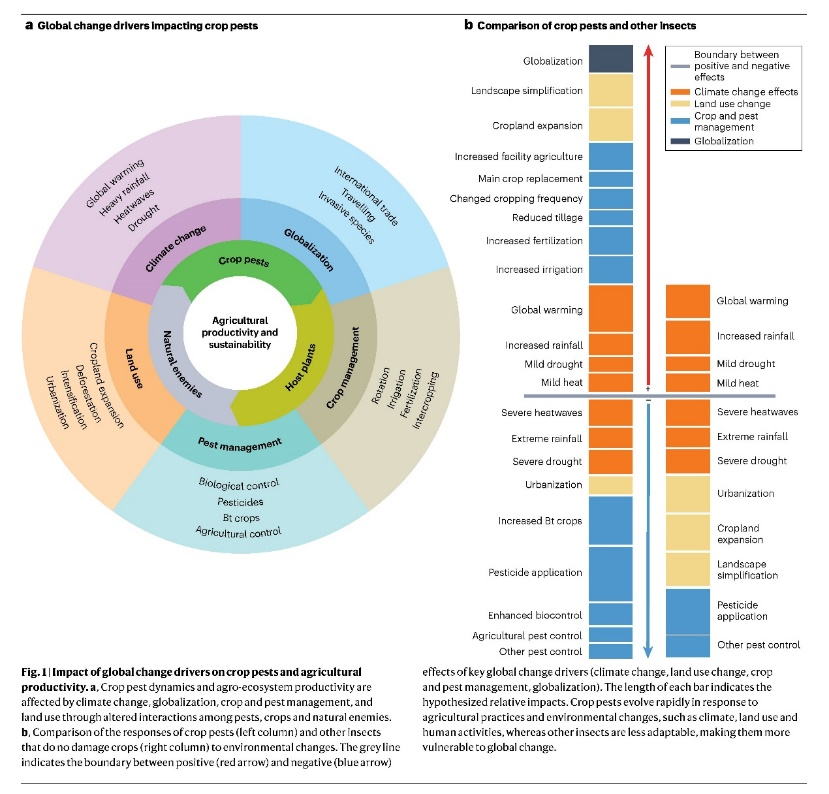图1. 全球变化驱动因素对作物害虫及农业生产力的影响