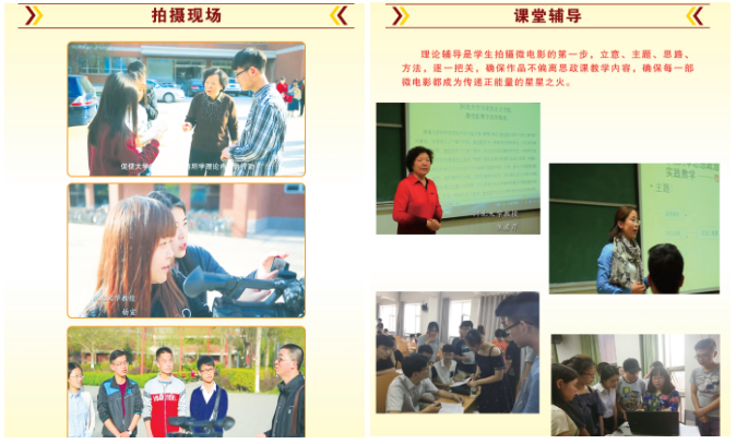 微电影教学促进大学生以艺术化方式学习践行习近平新时代中国特色社会主义思想。教师们组织“幸福微影”学生社团利用“幸福微影”微信公众号推送教研成果100余期,还指导学生获得教育部“我心中的思政课”高校大学生微电影大赛三等奖3项、河北省高校思政课教学成果展示一、二等奖6项。