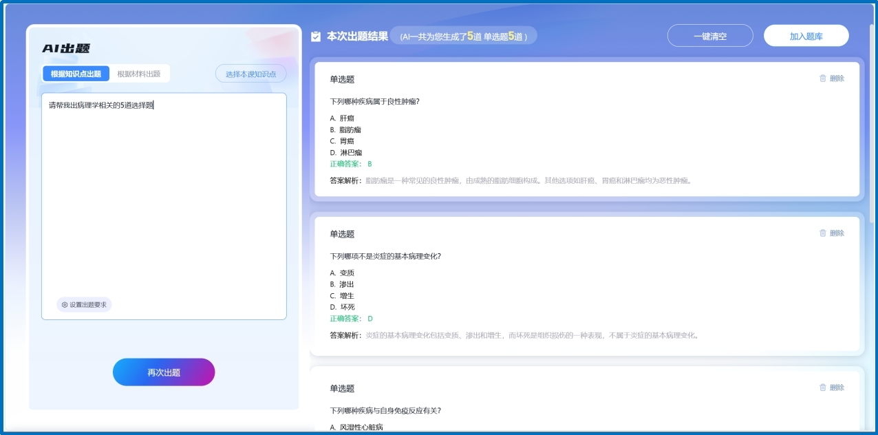 三、AI出题——智能生成课程题库,满足各类考试需求