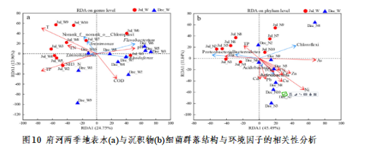 团队王亚利、刘玲博士采用16S rRNA基因测序研究白洋淀的微生物分布特点。结果表明,地表水的一些环境因子(氨氮(NH3-N)、总氮(TN)、总磷(TP)在时空尺度上存在差异。此外,TN、TP、总有机碳(TOC)或重金属在沉积物中无明显的季节差异。蓝藻、放线菌和厚壁菌门在水中的分布和放线菌、板霉菌在沉积物中的分布存在显著季节间差异(P < 0.05)。上游水体的细菌存在显著的空间差异,其中变形菌门(Proteobacteria)的丰度最高。PICRUSt代谢推断分析显示夏季高温对酶作用的影响导致河流微生物代谢相关基因丰度的增加。研究成果发表在本领域期刊Journal of Environmental Science(中科院二区TOP,IF=7.963)。