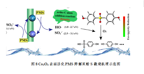 上述研究成果连续3期发表在环境功能材料领域环境工程领域期刊Chemical Engineering Journal(中科院一区TOP,IF=16.744)。此外,青年教师王泽华博士与山东大学孙孝敏教授团队合作,采用密度泛函理论研究了尖晶石Co3O4催化剂非均相活化PMS产生活性氧化剂(HO•、SO4•-和1O2),对BPS降解的微观机理,并对降解过程中生态毒性的演变进行了预测。研究采用密度泛函理论(DFT)方法为Co3O4/PMS体系中双酚S的降解机理提供了新的见解。该科研成果发表在环境科学领域期刊Journal of Cleaner Production(中科院一区TOP,IF=9.297)。