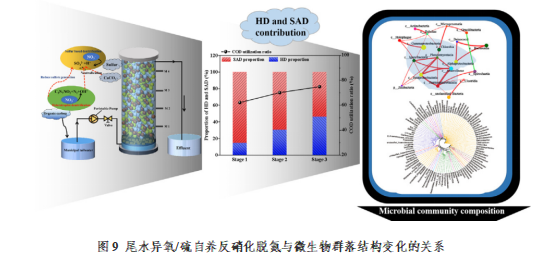团队青年教师刘玲博士建立了复合式异养/硫自养反硝化生物滤池(HSAD)反应体系,并应用于城市尾水中氮的深度脱除。相关网络分析表明,优势菌之间存在正相关或负相关关系,但在混合营养条件下微生物群落结构形成了稳定的共存状态。该研究成果揭示了城市尾水中微生物群落结构的变化与生物脱氮过程的内在联系,深化了对异氧/硫自养反硝化脱氮过程的认识。在微生物驱动的氮、碳、硫元素循环领域取得的研究成果发表在本领域期刊Science of the Total Environment(中科院二区TOP,IF=7.963)。