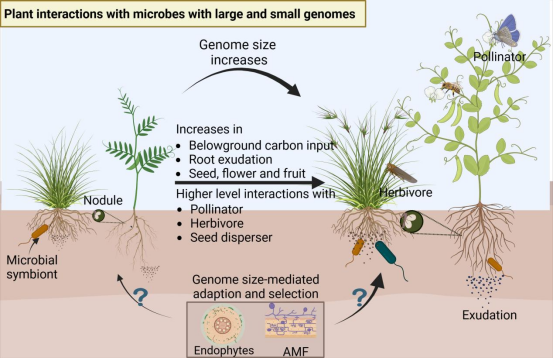 图1. 植物基因组大小与微生物互作
