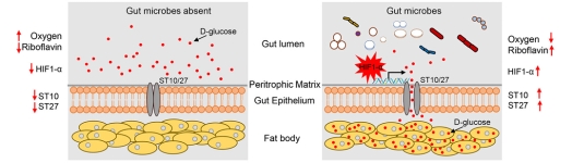 图1肠道微生物调控红脂大小蠹生长发育的模式图