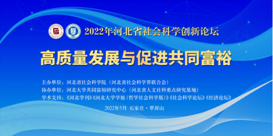 5月24日上午,由河北省社会科学院(河北省社会科学界联合会)主办、河北大学(共同富裕研究中心)协办的2022年河省社会科学创新论坛在石家庄市举行。此次论坛以高质量发展与促进共同富裕为主题,邀请到7位著名专家学者进行主旨发言,开展学术研讨。河北省社科院党组书记、院长、省社科联第一副主席康振海,河北大学党委常委、副校长徐建民出席此次论坛并致辞,院党组成员、副院长、省社科联常务副主席彭建强担任论坛主持。