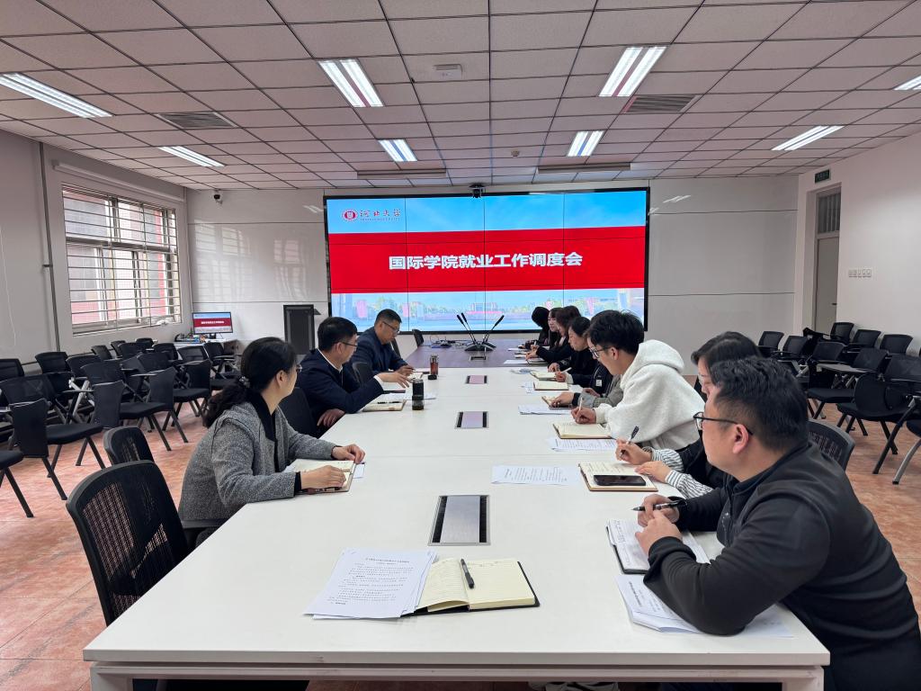4月10日上午,国际学院在A1-302召开2024届毕业生就业工作调度会。院党委书记杨子波、院长杨晓晖、党委副书记刘洋及全体辅导员参加此次会议。