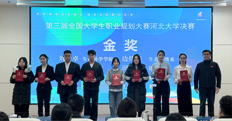 12月2日,第三届全国大学生职业规划大赛河北大学决赛落下帷幕。我院学子凭借清晰的职业定位、科学的规划思路与出色的现场表现,在众多参赛队伍中脱颖而出,共斩获金奖1项、银奖1项、铜奖4项,学院荣获“优秀组织奖”称号,创历史参赛最好成绩!