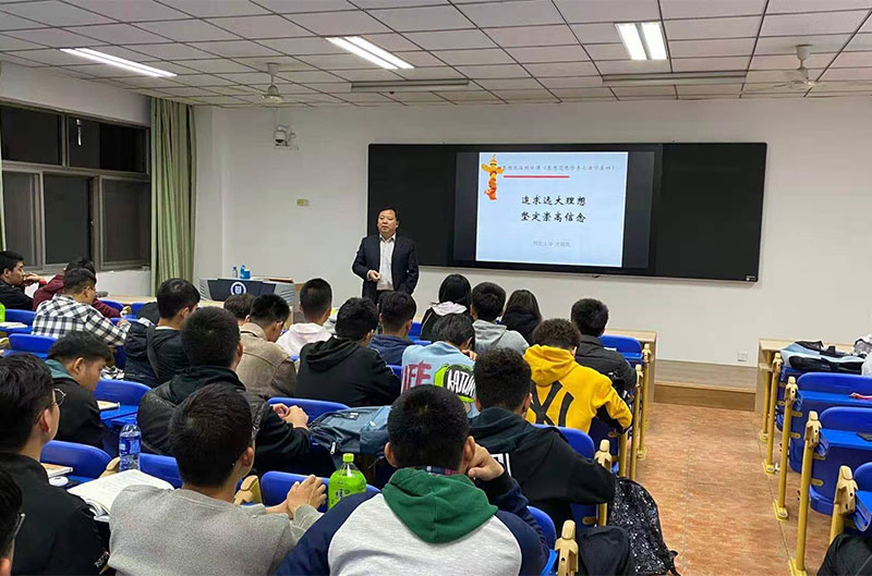 授课中,王洪凯通过丰富的资料和生动的事例,向同学们讲述坚定的理想信念是共产党人的胜利之“本”与精神之“钙”,更是实现中国梦的力量之“源”。他要求同学们从根本上学习并理解马克思列宁主义,毛泽东思想,邓小平理论、“三个代表”重要思想和科学发展观,尤其要以习近平新时代中国特色社会主义思想为指导,立足当前,脚踏实地,参与实践,努力奋斗。