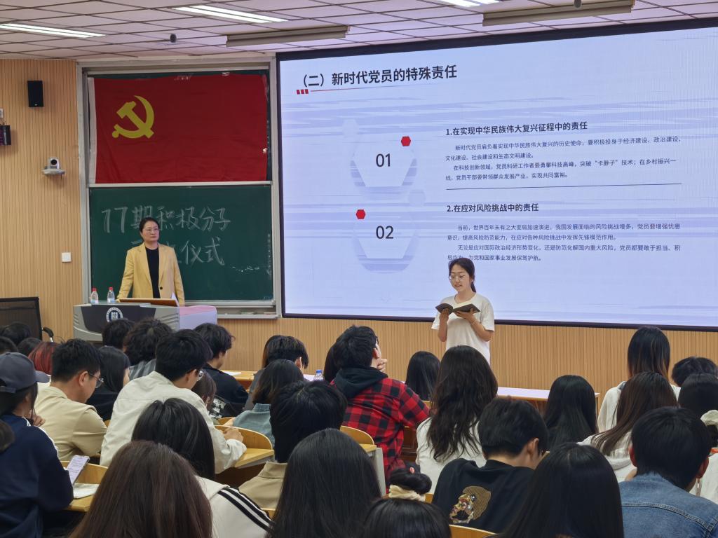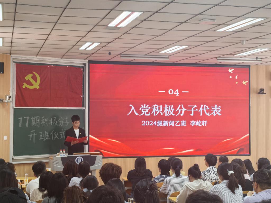 国际学院党委副书记刘洋老师在讲话中对入党积极分子们提出殷切期望,她强调同学们要严格自我约束,树立明确政治目标,扎实学好党的理论知识,为成为合格党员筑牢思想根基。积极分子代表李屹轩同学也在发言中分享了自己对入党的向往与追求,展现出积极分子们昂扬向上的精神风貌。