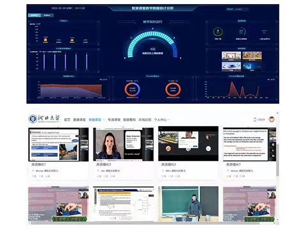 多措并举,优化教室软件硬件设备。学院统一在外教课堂安装摄像头,调试话筒和音响设备,实现教师和学生课上双向视频连接,拉近师生课堂距离。同时为了方便学生复习外教课程,学院开设录播平台,学生课下可以随时回看外教课堂视频。学院对线上教学资源进行数字化管理,建设智慧课堂大数据分析系统,科学实时了解学生学习状况。
