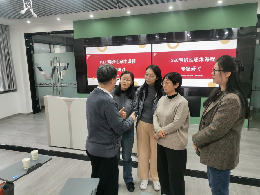 第二环节ISEC教师以解决明辨性思维课程实际教学问题为导向,分成五个小组研讨、展示。ISEC专家、清华大学殷雅俊教授逐一反馈,与教师互动交流,启发教师教学新思路。我院教师代表积极参与小组讨论,分享教学中的思考与探索,活动后殷教授专门指导国际学院明辨性思维课程教学团队。