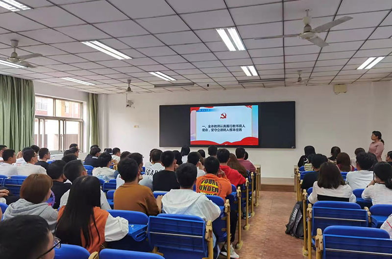 9月27日下午,学院全体2020级新生和辅导员在七一路校区A1教学楼401、402、403教室,观看并学习了河北大学党委书记郭健讲授的“在疫情大考中彰显使命担当”微党课。