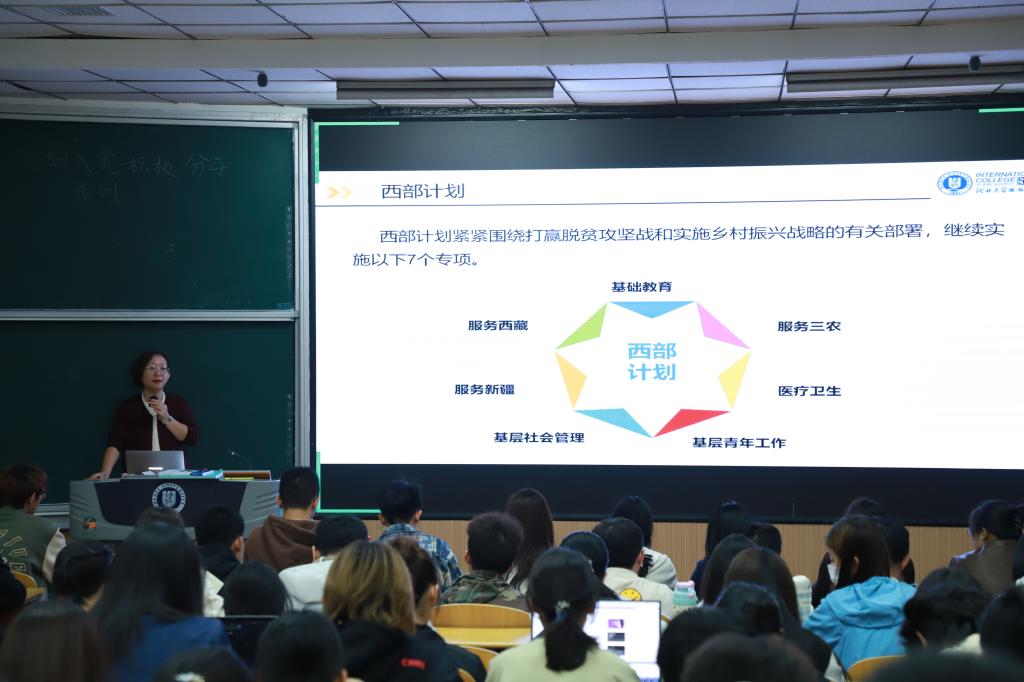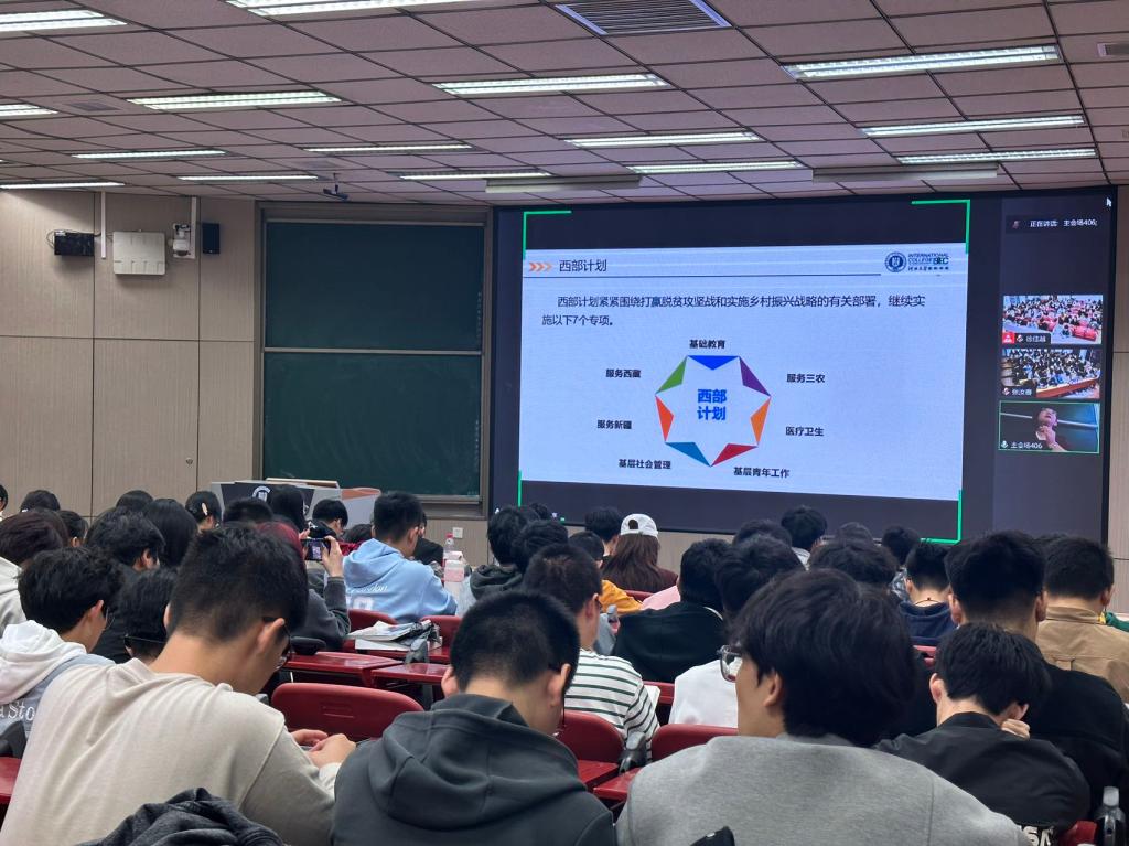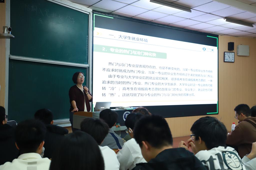 白薇老师介绍了当前的就业形势以及学院首届毕业生的就业情况,鼓励同学们制定合理的学习计划、平衡学业与兴趣、提升个人竞争力,科学规划学业职业。