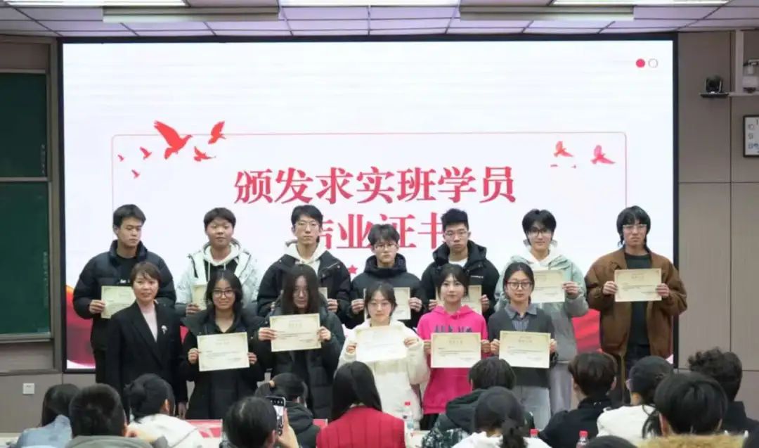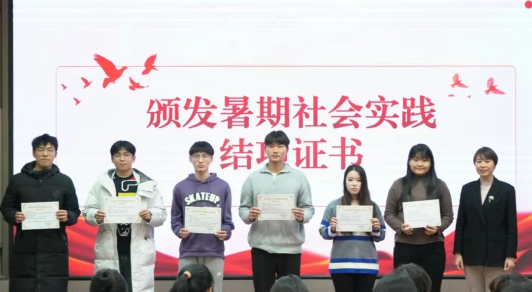 王建慧老师为求实班的成员们颁发结业证书,同时为2024年优秀暑期实践团队颁发暑期社会实践结项证书。