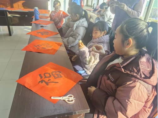 活动中,我们陪伴孩子写福字,那一张张红纸上的字迹虽显稚嫩,却满是对新年的期盼与祝福;大家一起包饺子,从擀皮到包馅,每一个步骤都充满乐趣。孩子们好奇的眼神、志愿者耐心的教导,构成了一幅幅温馨的画面。