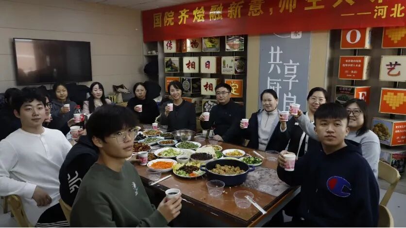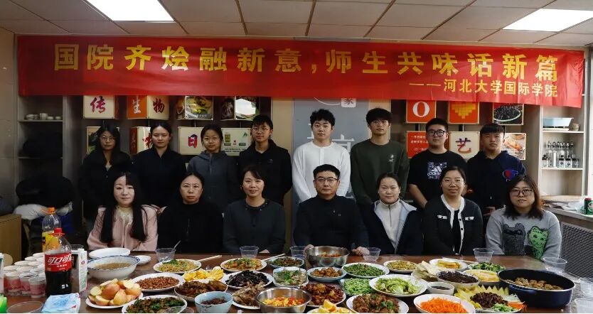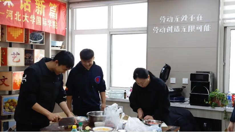 为进一步推进“一站式”学生社区文化建设,增强学生归属感与社区凝聚力,创新新时代劳动教育形式,搭建师生交流沟通平台,11月28日中午,国际学院在七一路校区“共享厨房”开展“国院齐烩融新意,师生共味话新篇”师生交流活动。河北大学国际学院党委书记杨子波、团委书记王建慧、教务科科长马荣娟老师及辅导员老师们与学生代表们齐聚共享厨房,携手下厨、共话成长,在锅碗瓢盆的交响中品味劳动之美,在烟火氤氲中传递师生温情,共同绘就一幅温馨和谐、情意浓浓的育人图景。