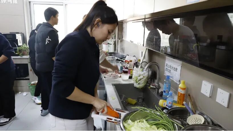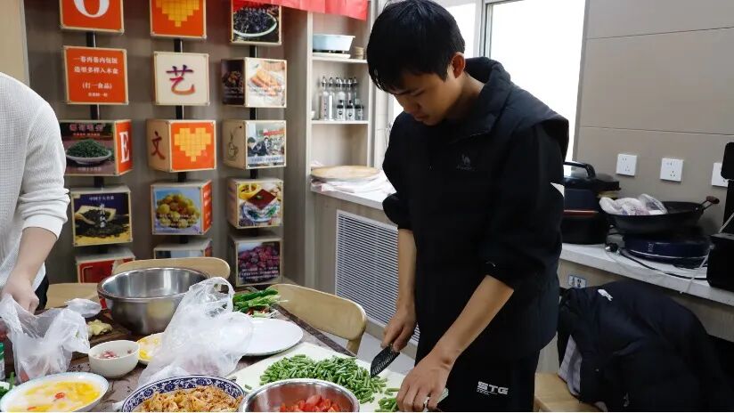 活动伊始,师生们默契协作,分工处理食材、布置场地,积极投入到午餐制作的准备工作之中。从采购挑选新鲜食材,到拣洗切配各种配菜,从掌勺烹制美味佳肴,到挑煮面条、配撒面码,师生在灶台前一同交流烹饪技巧,分享做饭心得,现场气氛温馨和谐。