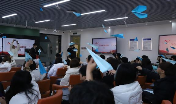 12月5日国际志愿者日当天,学院以“志愿薪传微光成炬”为主题举办志愿服务工作总结大会,团委王耿辉老师出席本次活动。大会全面回顾本年度志愿服务成效与特色志愿活动,学子以实际行动彰显责任担当。学生代表现场发出“放飞青春理想,共赴志愿之约”倡议,全体师生手持承载服务承诺与成长期许的蓝色纸飞机共同抛向空中,以生动形式让志愿火种薪火相传,激励更多师生以微光汇聚成炬,在志愿服务中书写青春华章。