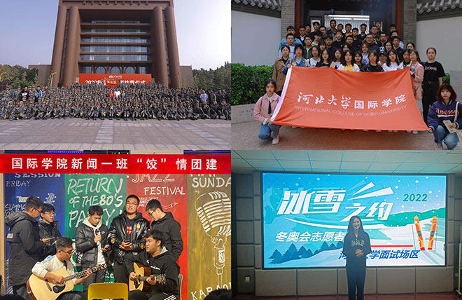 一是注重思想培育,持续建构团学组织发展平台。国际学院以立德树人为根本任务,探索建构“思想引领,榜样教育,经验分享,共同进步”的学生工作模式,把握功能定位,履行职责使命,切实推动团组织建设,培养学生素养,切实推动学生综合提升。师生同上开学第一课--“在疫情大考中彰显使命担当”主题微党课,感受了疫情期间河大人全力以赴、共克时艰的强大力量;学院领导走进学生思政课堂,教育同学们作为时代的见证者与参与者,要为实现中华民族伟大复兴的中国梦而努力奋斗;开展预备党课,集中授课、观影、小组讨论、实践活动等形式进行,让同学们从历史与现实、理论与实践等多个角度和层面领会了党章要义;建立团学组织,提高学生综合素质,丰富学生课余生活,维护学生权益,在学生自我管理、学习促进和文化氛围营造上发挥重要作用,为学生提供一个更为全面、广阔、公平的发展平台。