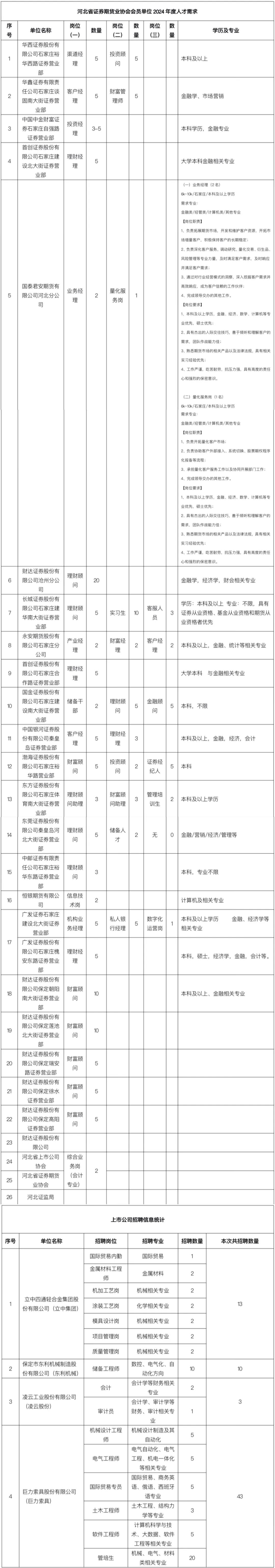 为促进2024届毕业生更高质量更充分就业,河北大学在七一路校区组织专场招聘会,共有26家河北省证券期货经营机构和4家上市公司,诚挚邀请毕业生同学们积极参与!