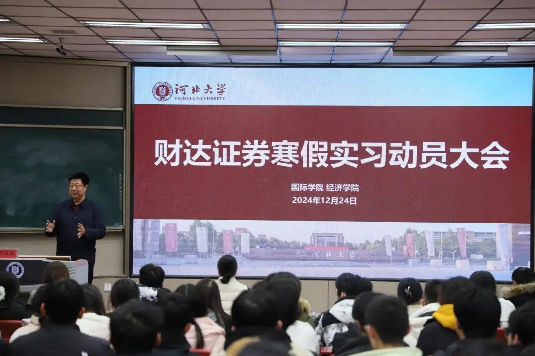 会上,副院长尹成远强调了实习的重要性,鼓励同学们在实习中积极将理论与实践相结合,认真学习行业知识,遵守公司规章制度,提醒同学们实习期间注意安全,规避风险,秉持契约精神,以自己的言行率先垂范,展现河北大学学子的优秀素质和风采。