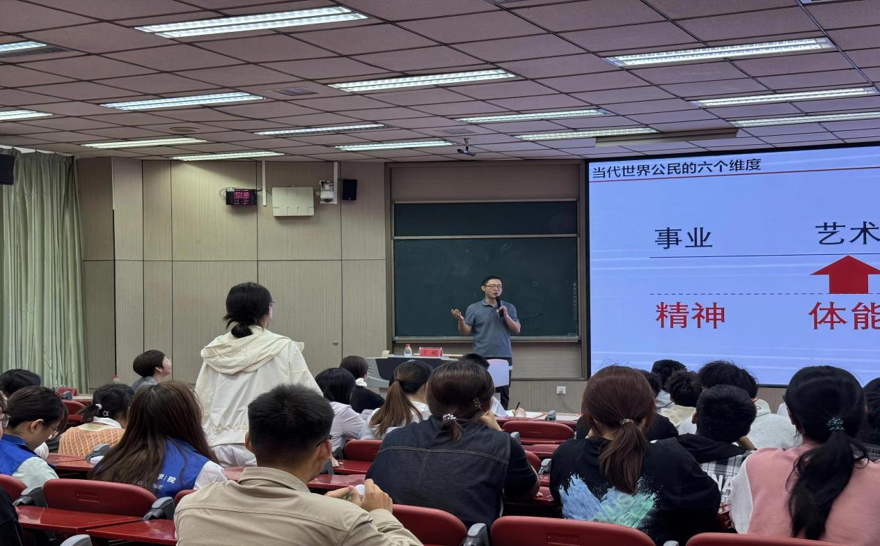 讲座环节,王欣老师以“生命能量系统”为核心框架,从精神、体能、格局、学术、艺术、事业六个维度,系统阐释了当代青年的成长路径与发展脉络。他巧妙运用水力发电原理作比喻,生动引出“收敛——绽放——创造”的能量管理理念,强调大学生需聚焦核心事务、避免精力内耗,通过“绝对收敛,极致绽放,卓越创造”的实践方法,构建切实可行的能量管理体系,为同学们平衡学业与生活、规划成长路径提供了清晰指引。