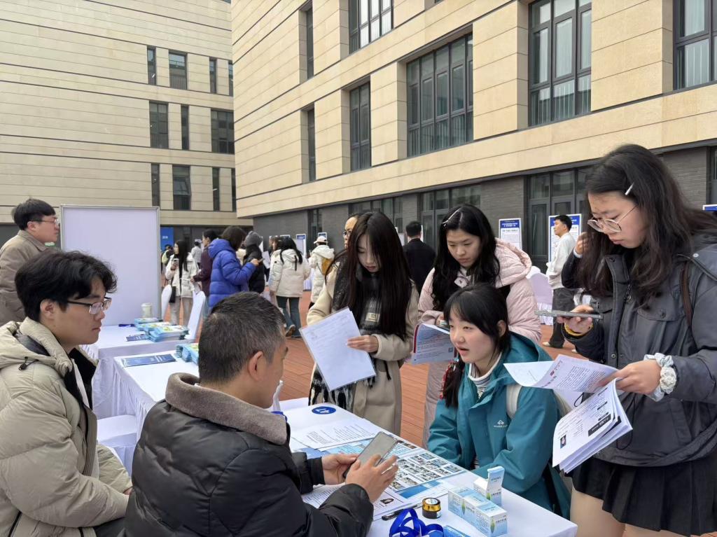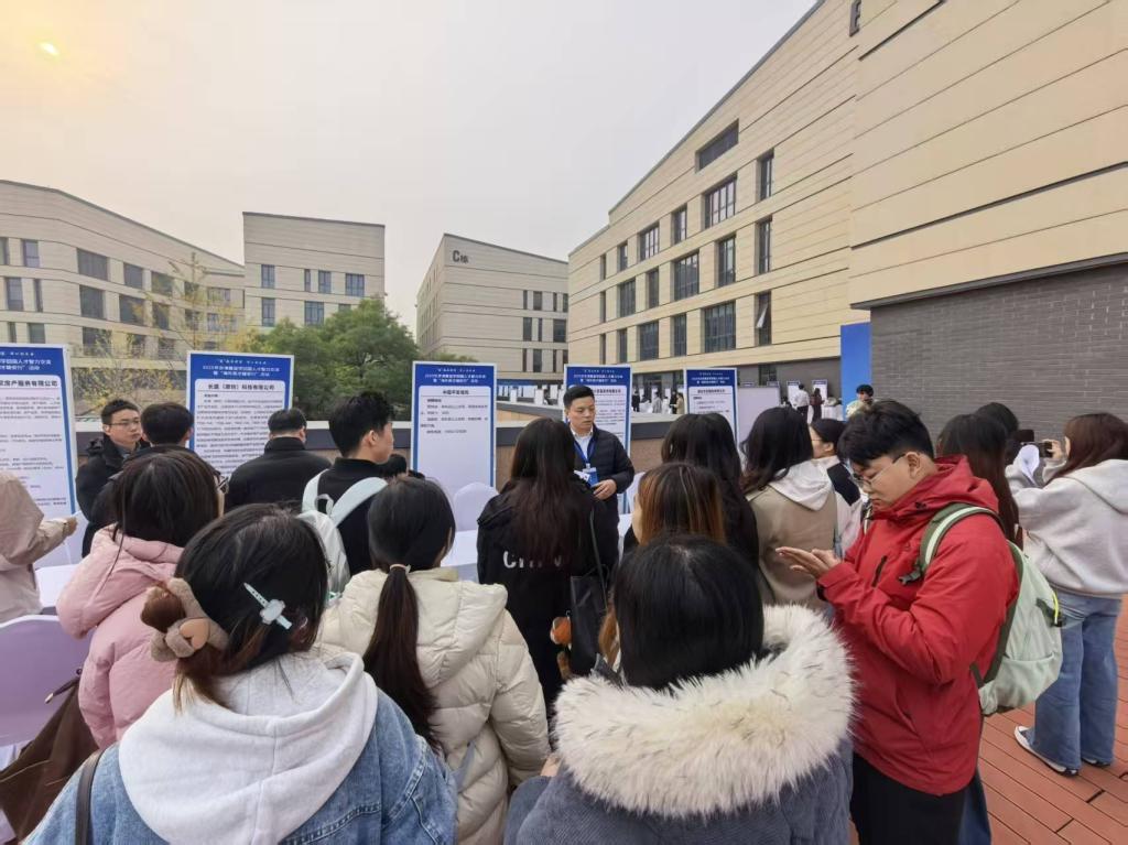 学院科创智汇中心的同学们主动担当“学院名片”,向参会企业系统推介国际学院在人才培养、学科特色等方面的就业优势,为学子争取更多发展机遇。同学们热情高涨,手持精心准备的简历,主动与企业HR沟通,展现了扎实的专业素养和积极的求职态度。