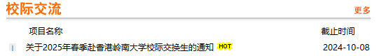项目名称:关于2025年春季赴香港岭南大学校际交换生的通知