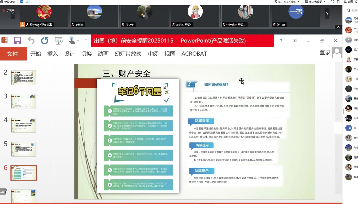 本次提醒会的成功举办不仅有利于赴外学习的广大学子坚定爱国信念,提高应变能力及安全防范能力,还有利于加强赴外留学人员在外生活和学习期间的环境适应力,为广大赴外留学、交流的学子筑牢安全防线,为留学工作奠定坚实基础。